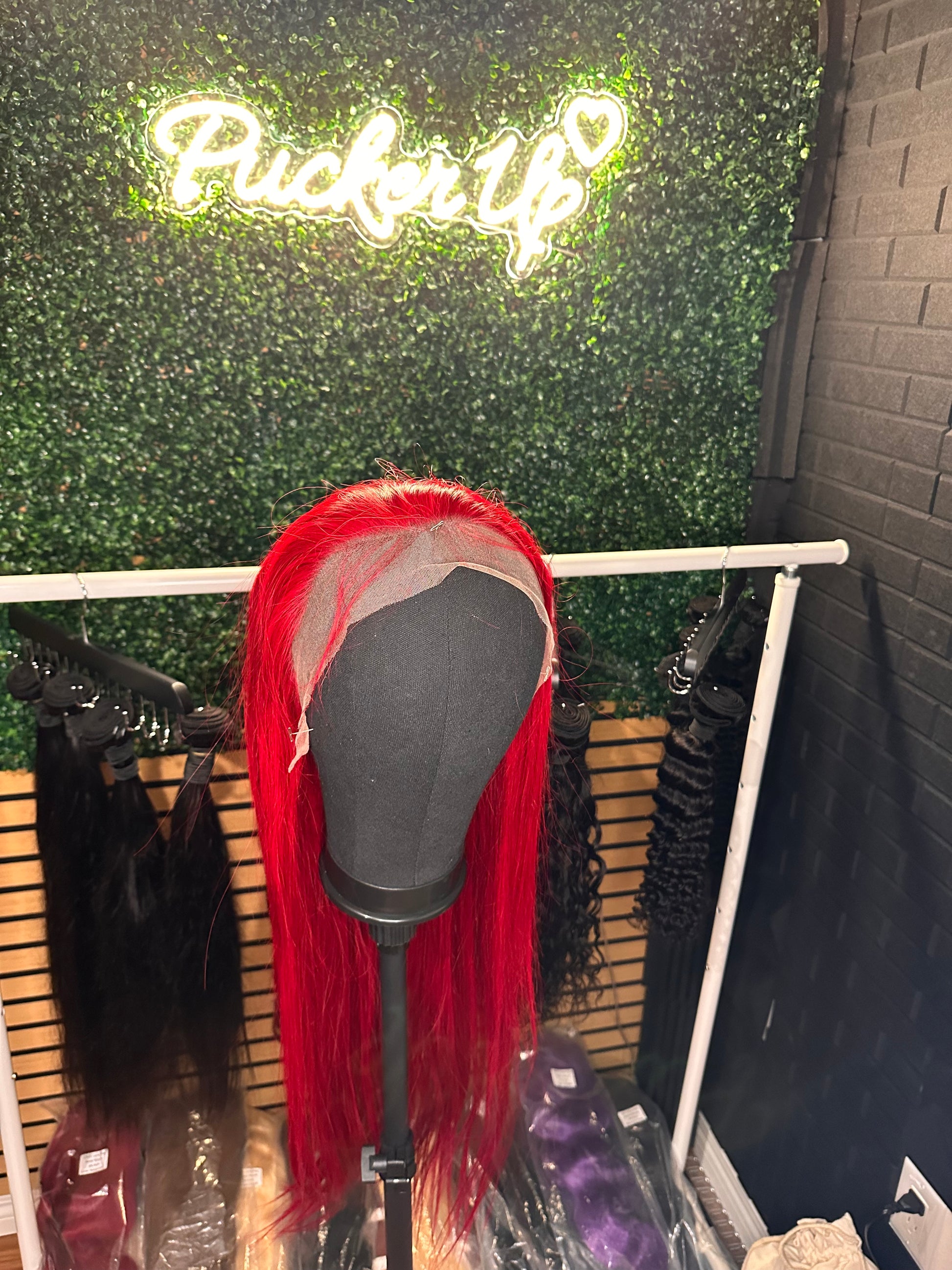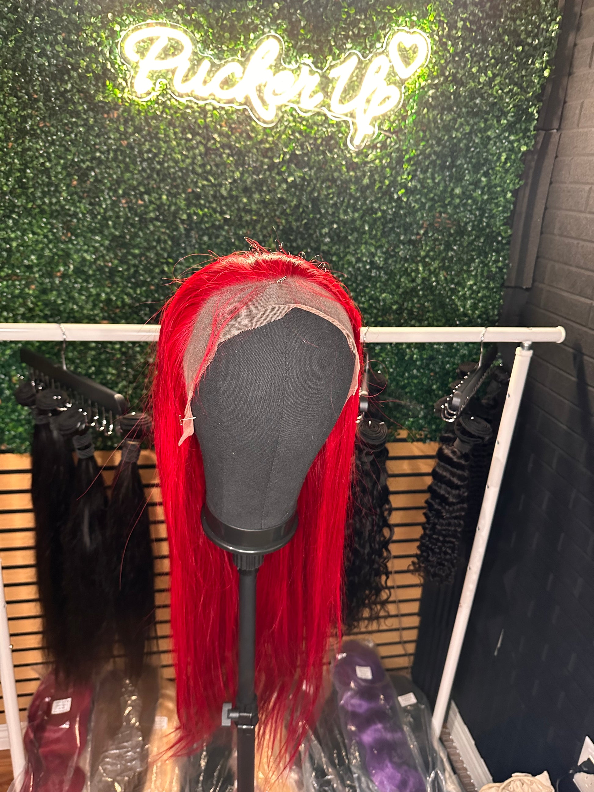 Experience the unique and luxurious look of our Cherry Burgundy 24 inch wig. Made soft and silky this rich red burgundy wig will add a glossy shine to your style. Elevate your look with confidence and elegance. Lace 13*4.