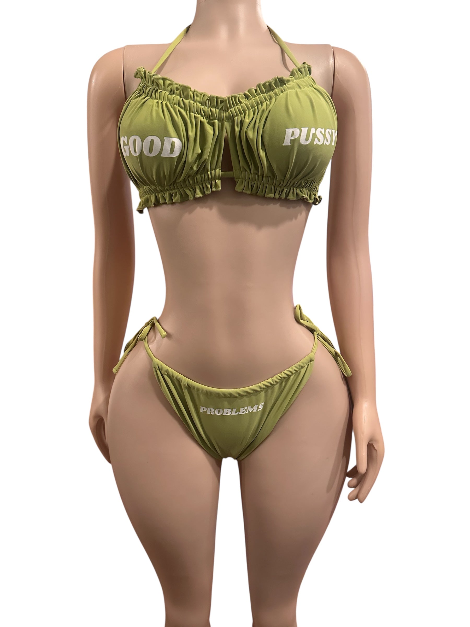 "Get ready to make a splash with our Gpp raffled 2 piece bathinsuit! This cute and unique swimsuit is not only stylish, but also comfortable for a day at the beach. Perfect for those who don't take themselves too seriously. Get ready to turn heads!"
