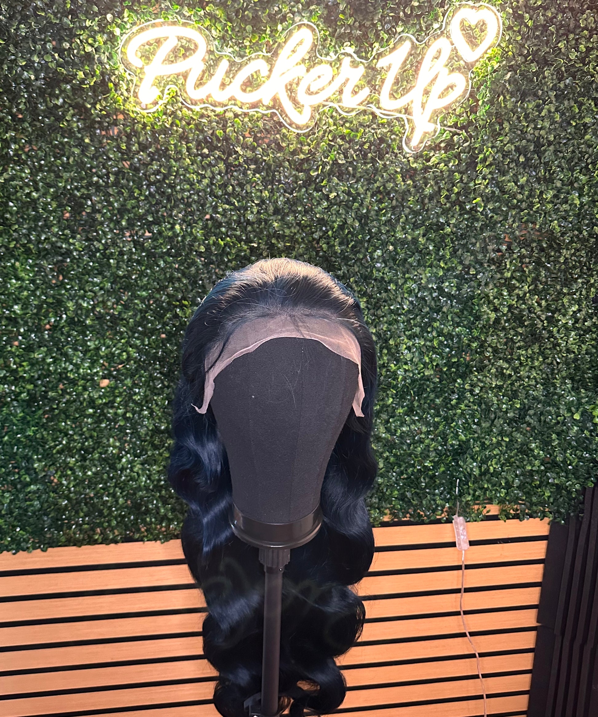 28 inch body wave hd lace 13*4 lace front ! Unique color midnight blue ! High quality and high quality lace !